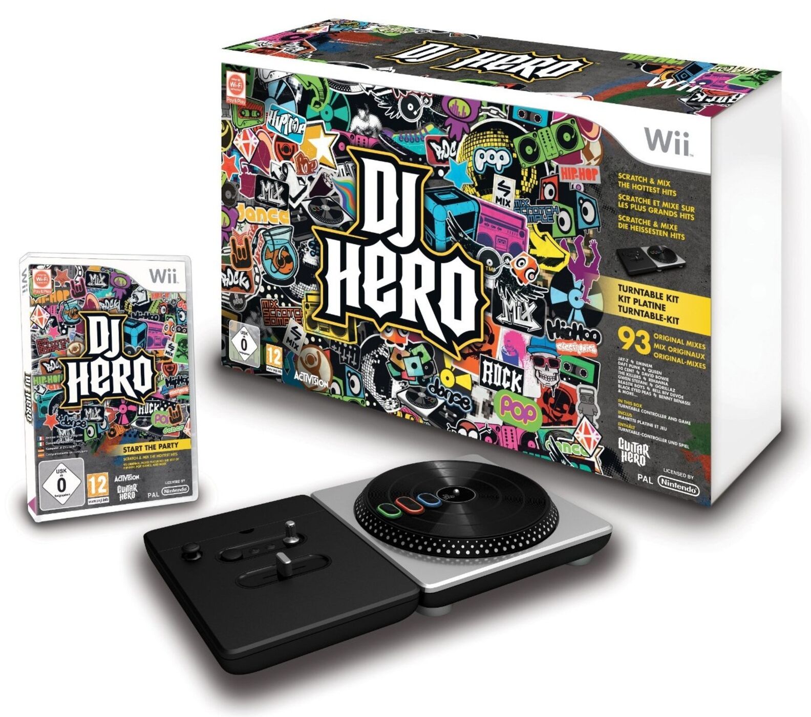 Created exclusively for DJ Hero, the turntable controller immerses fans into the authenticity of DJ culture and a sea of music as they utilise and master various DJ techniques including scratching, blending, cross fading and sampling, while leaving room for creative expression with a variety of effects and player chosen samples and scratches, transforming a face in the crowd into the life of the party.