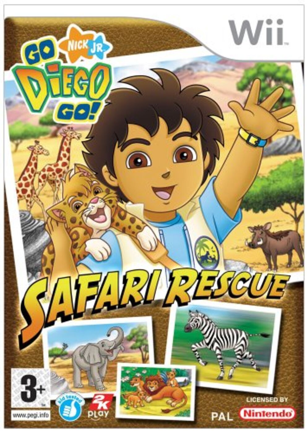 Based on Nickelodeon research with preschoolers and their families to determine how the platform’s motion-play capabilities are absorbed by younger children, Go, Diego, Go!: Safari Rescue was designed with 13 intuitive Wii-centric motions that maximize the engineering of the Wii Remote™ for a preschooler. Taking on the role of Diego in a race across Africa, gamers stomp to scare away lions, jump with Baby Jaguar, paint stripes on zebras, climb up ladders and swim across the jungle river by mimicking those actions with the Wii Remote.Reviews