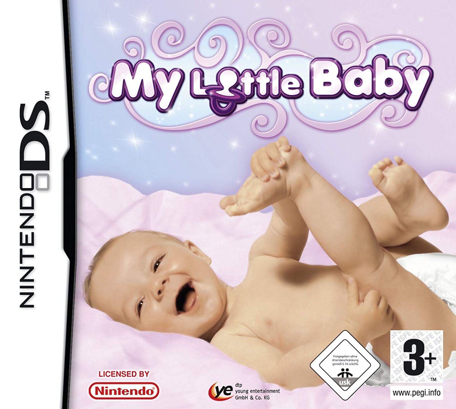 My Little Baby is a family-friendly game for the Nintendo DS that gives players the opportunity to raise a baby - all without the real-world messes, sleepless nights, or "terrible two's." Players start by creating virtual parents, whose unique characteristics - eye color, hair color, skin tone, etc. - determine the baby's physical features. Once the baby arrives, it's up to the player to care for it - cradling, feeding, cleaning, entertaining and dressing the baby. As the baby grows, it will learn to crawl, then walk, and through interactions with the player via the Nintendo DS' microphone, can even learn to talk!A helpful virtual nanny offers feedback and useful tips for raising the baby; while an easy-to-use menu system helps players navigate the world of raising a newborn - from shopping for unlockable food, toys, furniture and clothing to changing diapers. Many of the day-to-day tasks are presented through enjoyable and intuitive mini-games, with mastery praised and rewarded.