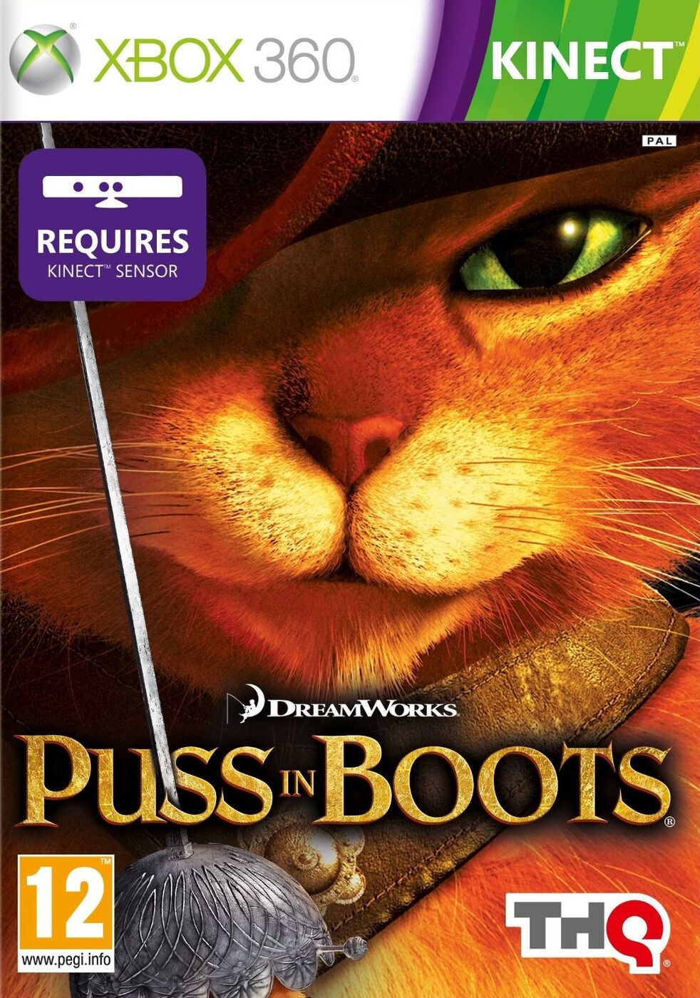 • Kinect for Xbox 360. On Kinect, players become Puss In Boots, utilizing full-body motions to fight off foes, side-step attacks, engage in fast-paced swordplay and strum the guitar.