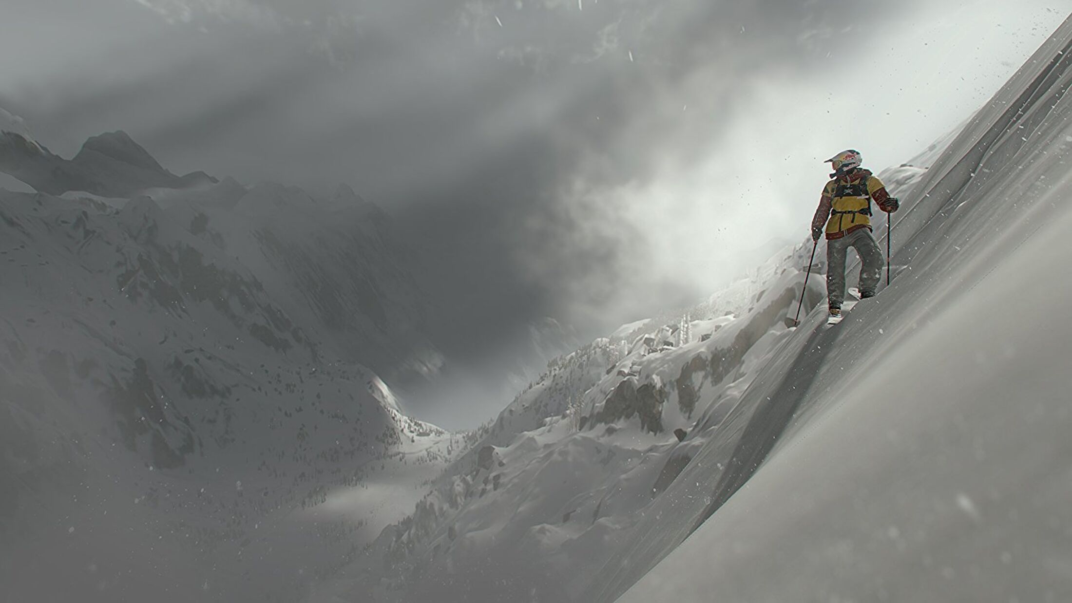 - Choose between four unique ways to traverse the mountain: ski, wingsuit, snowboard, or paraglide.