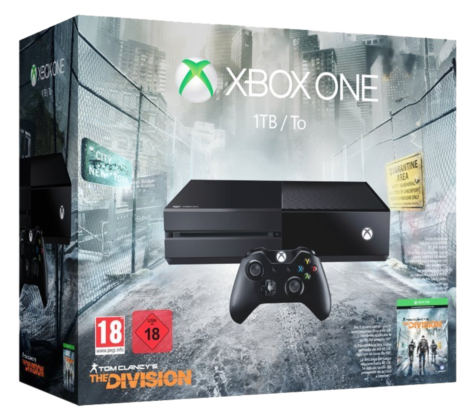 Own the Xbox One Tom Clancy's The Division Bundle, featuring a 1TB hard drive and a full-game download of Tom Clancy's The Division. Create your own powerful agent to take back New York City from dangerous factions during a deadly pandemic in The Division, an online, open-world, RPG experience like no other. Team up with friends in co-op on Xbox Live, acquiring new skills and weapons as you investigate the source of the virus and engage in fierce battles together. Play and store more games than ever, including your digital and disc-based Xbox 360 games, with a 1TB hard drive. With the greatest games lineup in Xbox history, including Halo 5: Guardians, Quantum Break, and ReCore, there's never been a better time to jump ahead with Xbox One.